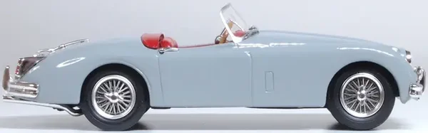 Oxford's Jaguar XK150 Roadster op schaal 1:43 in Mist Grey.