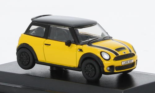 De door BMW geproduceerde MINI heeft misschien niet de iconische status van de originele Austin Classic Mini, maar hij blijft ontzettend populair en trekt nog altijd sportieve bestuurders aan in het Verenigd Koninkrijk en daarbuiten. De kleurenschema's zijn altijd opvallend en onze nieuwste release stelt niet teleur, dit keer in een vrolijk geel met een zwart dak en bijpassende exterieurbekleding. Het Cooper S-logo laat zien dat dit model iets boven de standaardversie staat, terwijl de zwart-witte strepen over de motorkap net dat beetje extra flair toevoegen. Het interieur is geheel zwart, en onze kleine schaalmodelreplica op 1:76 heeft de registratie LA56 ODY uit de tweede helft van 2016.