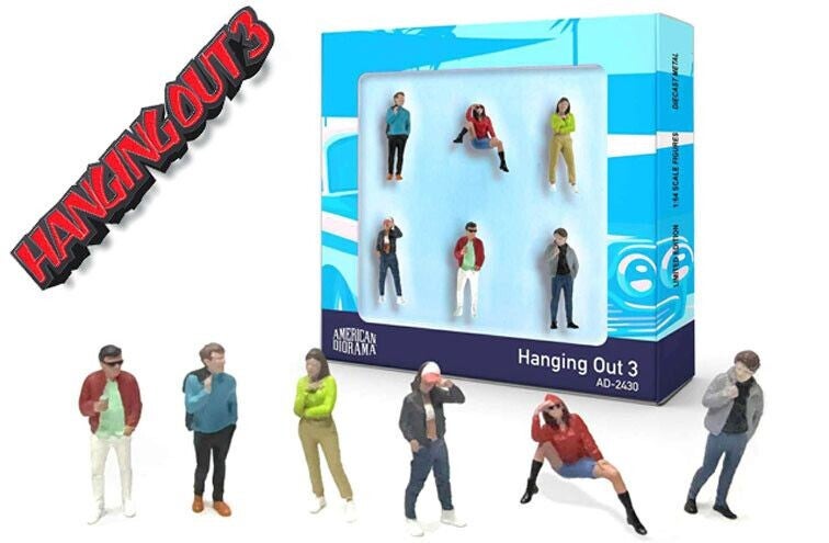 American Diorama Hanging Out 3 figuren set met 6 personages in 1:64. Perfect voor diorama’s, straatscènes en modelauto‑display.